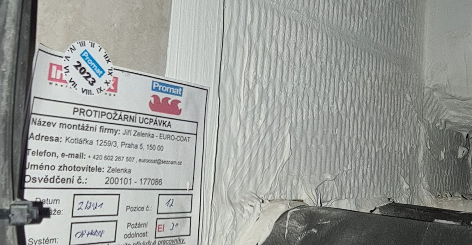 detailní vizuální kontrolu všech ucpávek a požárních prostupů